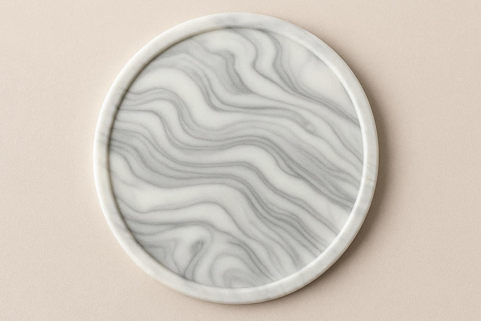 Enjoy the luxurious look of marble without the cost or fragility with this set of six silicone coasters. Each coaster features a realistic marble pattern printed on durable, flexible silicone. They measure 4 inches in diameter and are just 2mm thick, offering a sleek, low-profile look on your tables.